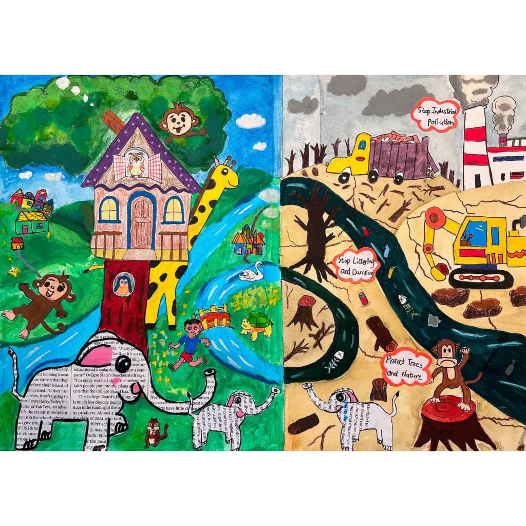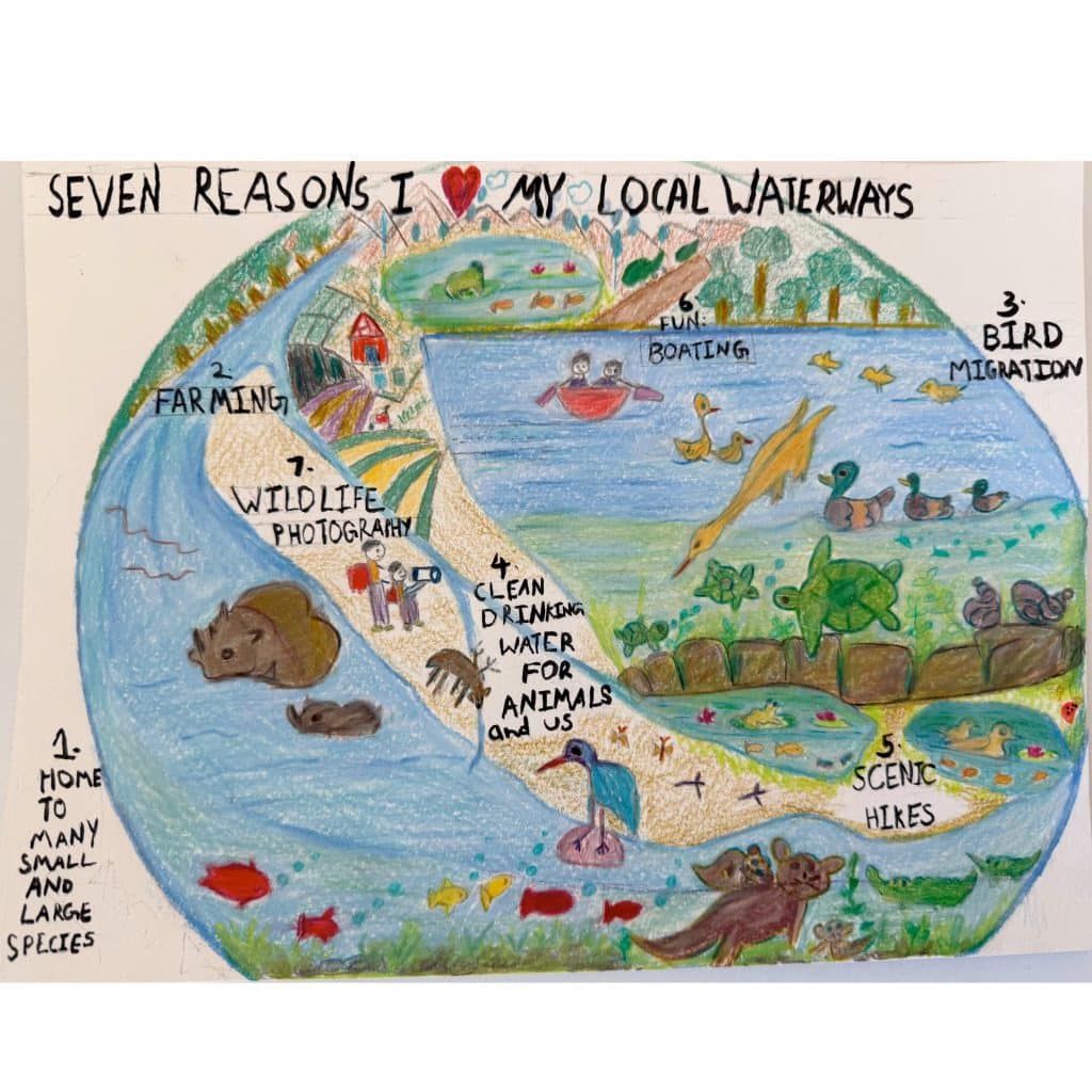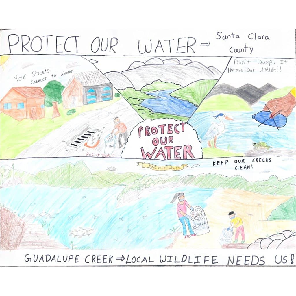 The Watershed Watch Campaign invited Santa Clara County K-8 students to create, inform and inspire through the Watershed Watch Earth Day Poster Challenge. The Challenge offered cash prizes for first and second place winners in three age brackets: K-2nd, 3rd-5th and 6th-8th grades. To create their artwork, students responded to one of two prompts: “How can you prevent water pollution?” or “What do you love about our local waterways (creeks, rivers, lakes)?” Posters were judged by Santa Clara Valley Urban Runoff Pollution Prevention Program (SCVURPPP) members on the criteria of originality, clarity and expression of theme.
